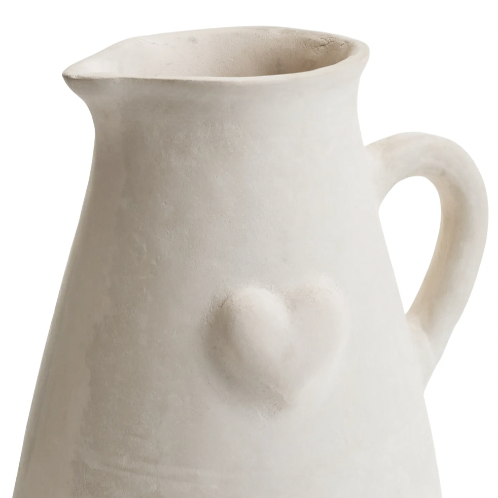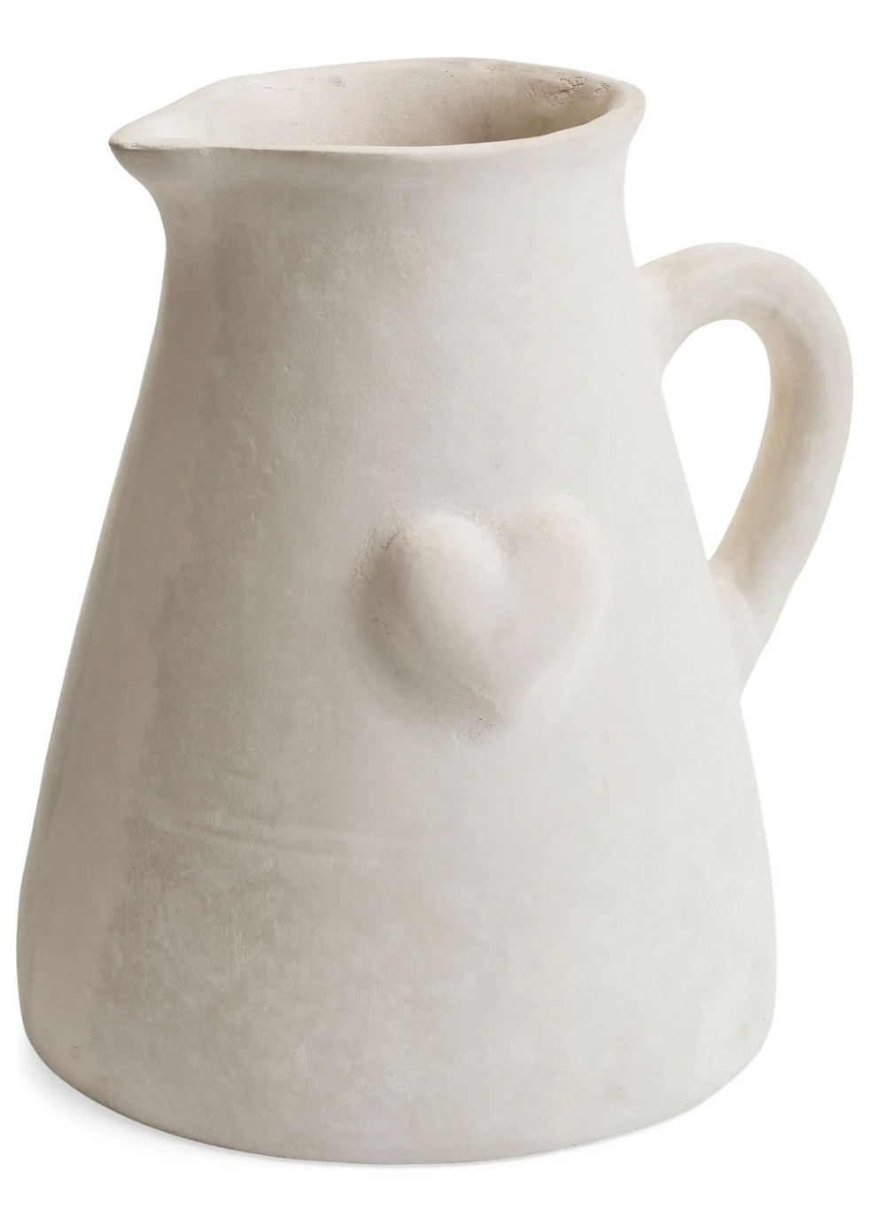 This charming paper mache vase, featuring a playful embossed heart and a handy handle, adds a whimsical touch to any room. Perfect for brightening up your space with fresh flowers or as a quirky decorative piece, it brings warmth and personality wherever it’s placed.