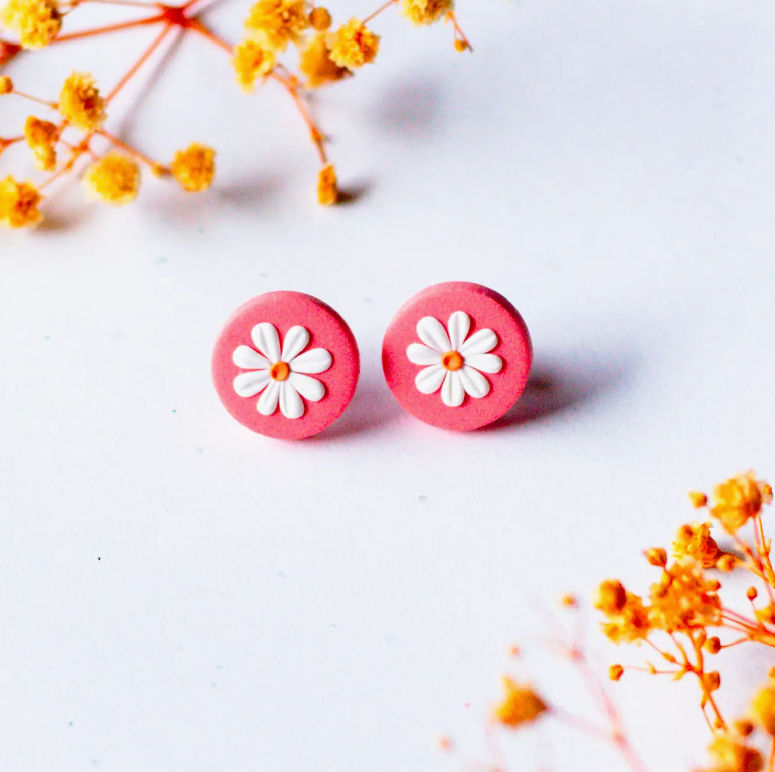 These dainty, everyday mini daisy studs are handmade with polymer clay, and they are super lightweight, and are the perfect everyday pair. Made in Canada. All findings are surgical stainless steel and sealed with UV resin for durability.