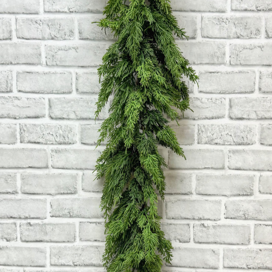 Elevate your holiday spirit with the 60" Juniper & Cypress Garland, designed to bring a fresh and festive vibe to any space. Perfect for wrapping around stair rails, adorning your mantel, or framing doorways, it adds a playful splash of greenery that instantly brightens your holiday decor.