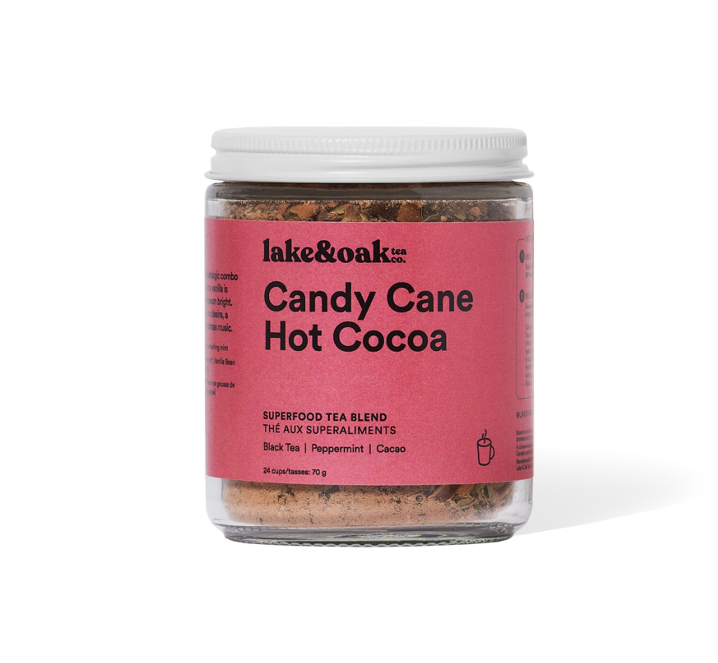 Vanilla Candy Cane - Winter Mint Creamy, cozy and minty-fresh, this joyful tea transports you to a dreamy winter wonderland. Energizing and antioxidant-rich black tea pairs up with fresh peppermint and vanilla bean for a superfood twist on Christmas candy cane. Pairs deliciously with a crackling fire, cozy socks and Hallmark holiday movies.