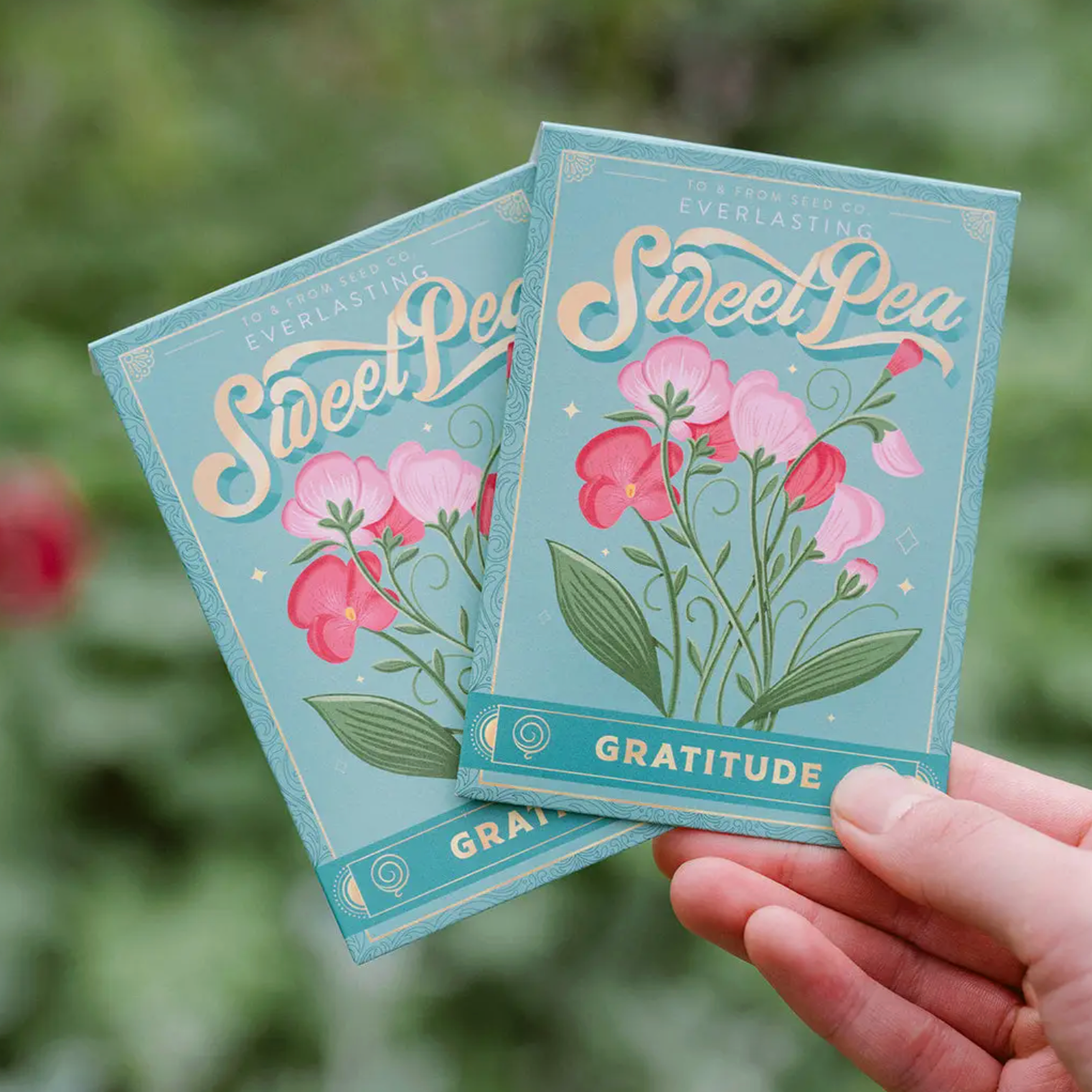 Just as sweet peas climb and entwine nearby fences or walls, they symbolize the connections and relationships we cherish. Sweet peas are a classic way to convey heartfelt thanks and acknowledge acts of kindness. May these delicate and fragrant blossoms extend gratitude to those who make your life a little bit sweeter. Contains: Approximately 12 seeds.
