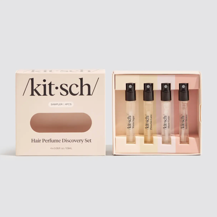 A quick way to refresh your hair between washes Includes 4 sample-sized versions of Warm Sugar, Pistachio Latte, Sheer Violet, and Amber Shores Hair Perfume .