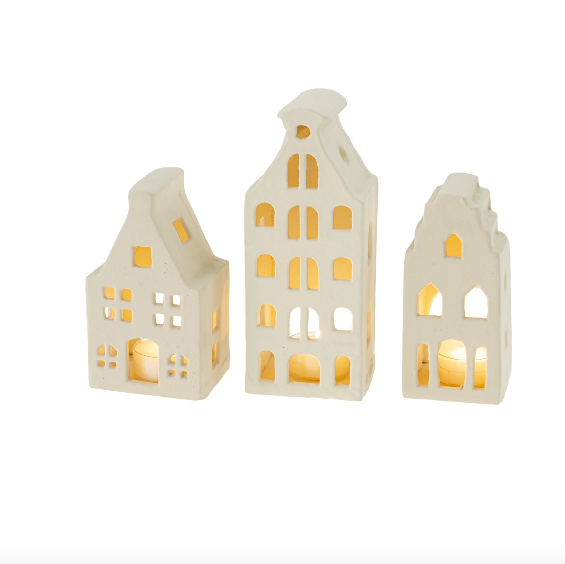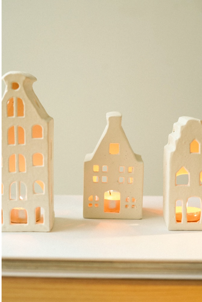 The Large Vail Tealight House brings warmth and charm to festive styling with its simple, handcrafted design. Made using sand-casting techniques, this aluminum tealight holder features a matte cream finish and cut-out windows that allow candlelight to glow softly through. Whether styled alone or arranged with other houses to create a quaint village display, it offers a cozy ambiance while maintaining a minimal aesthetic.