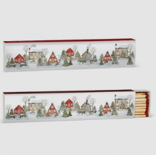 These fireplace matches feature a beautifully designed box adorned with elegant Winter Houses artwork or Evergreen Forest , bringing a touch of snowy charm to your cozy evenings. Perfectly sized for lighting campfires, fireplaces or candles, they combine practicality with a rustic charm. A delightful addition to any hearth! Each matchbox includes 40 wooden matchsticks and makes a great add-on to tealights and candles. 10" long