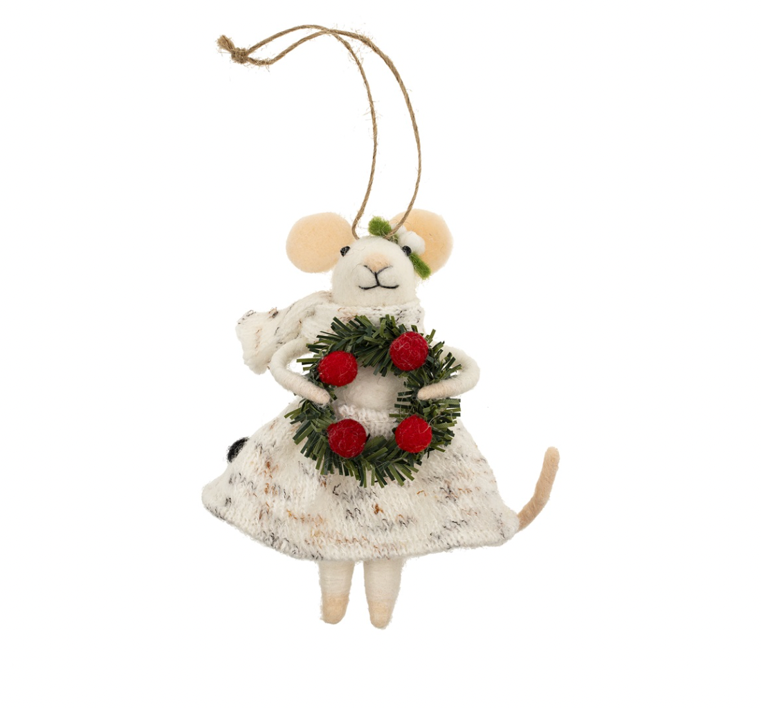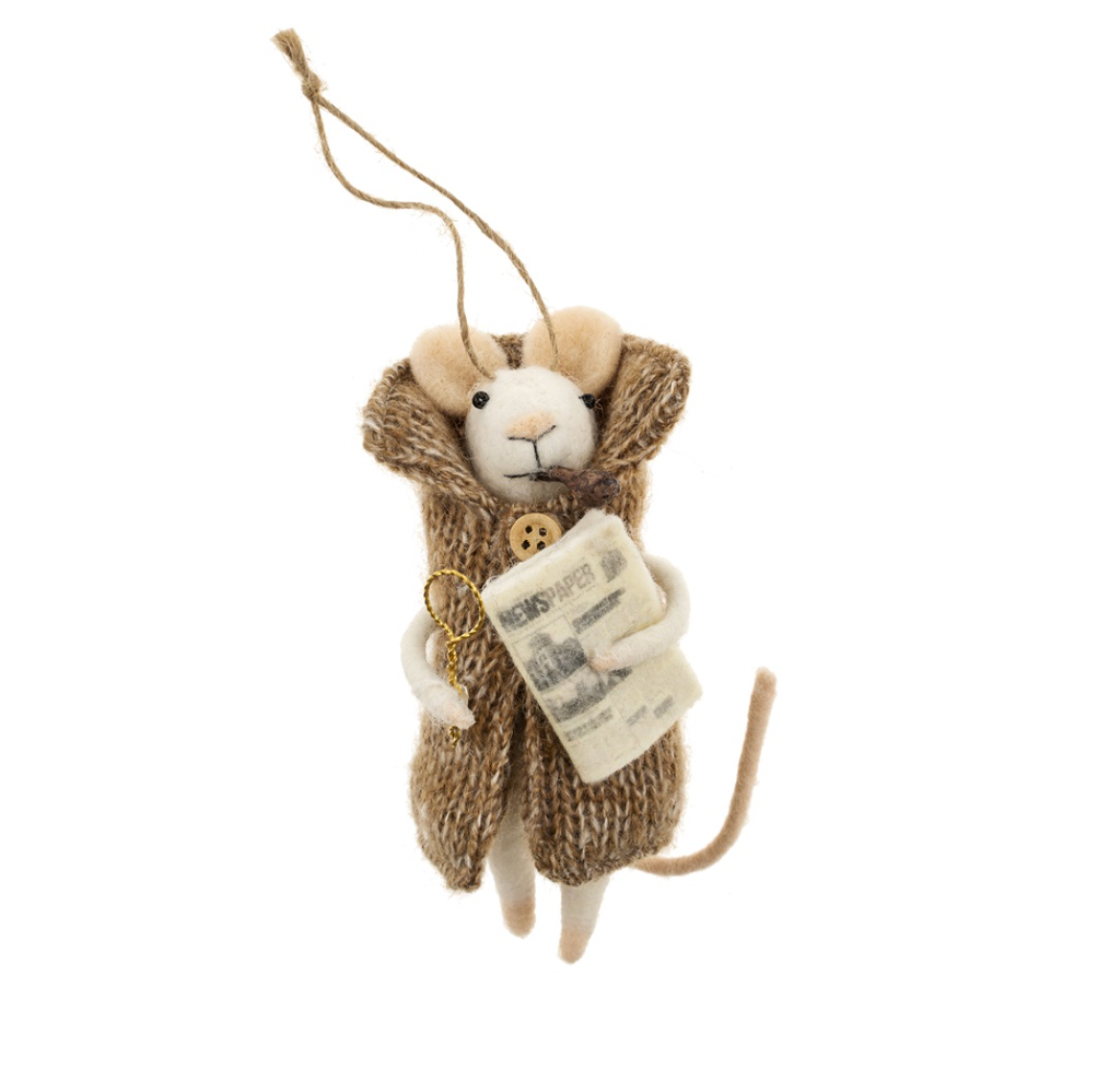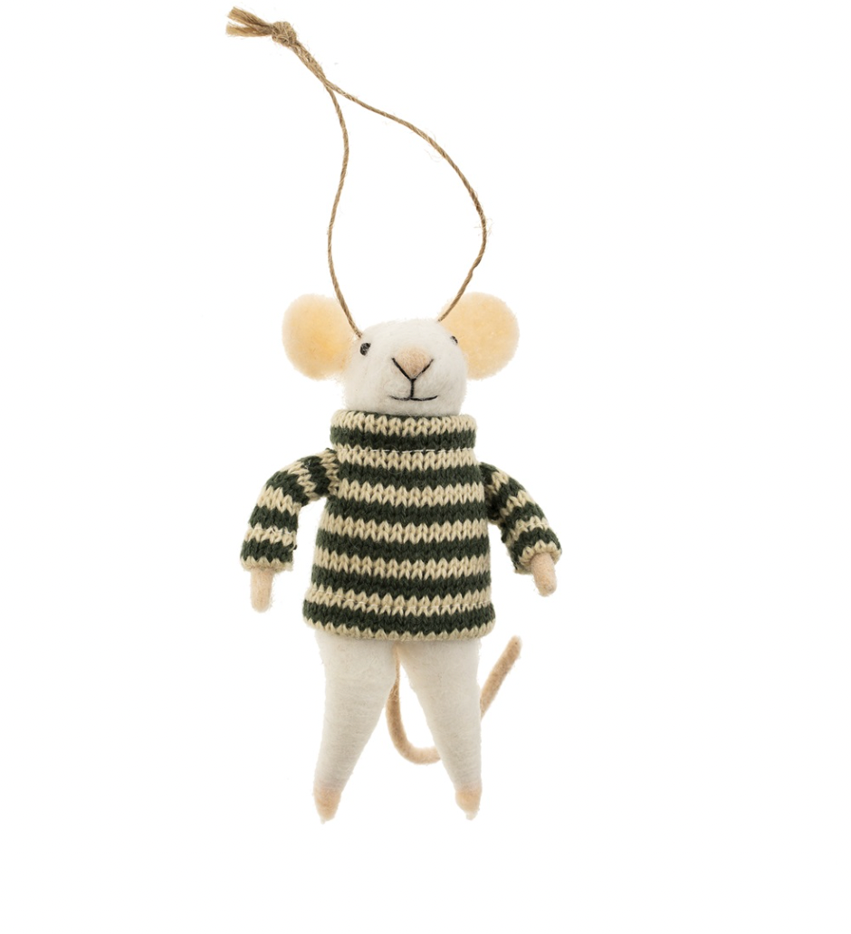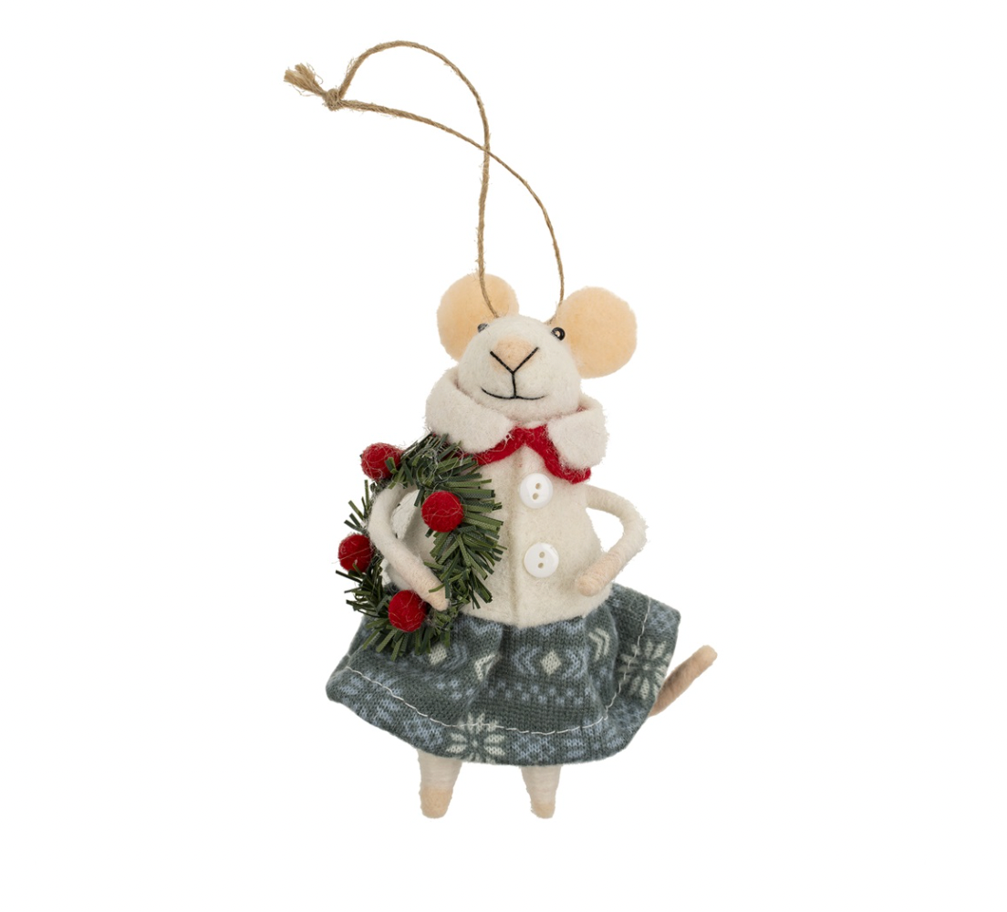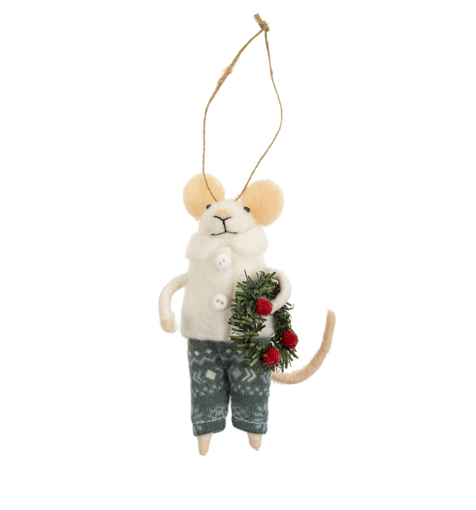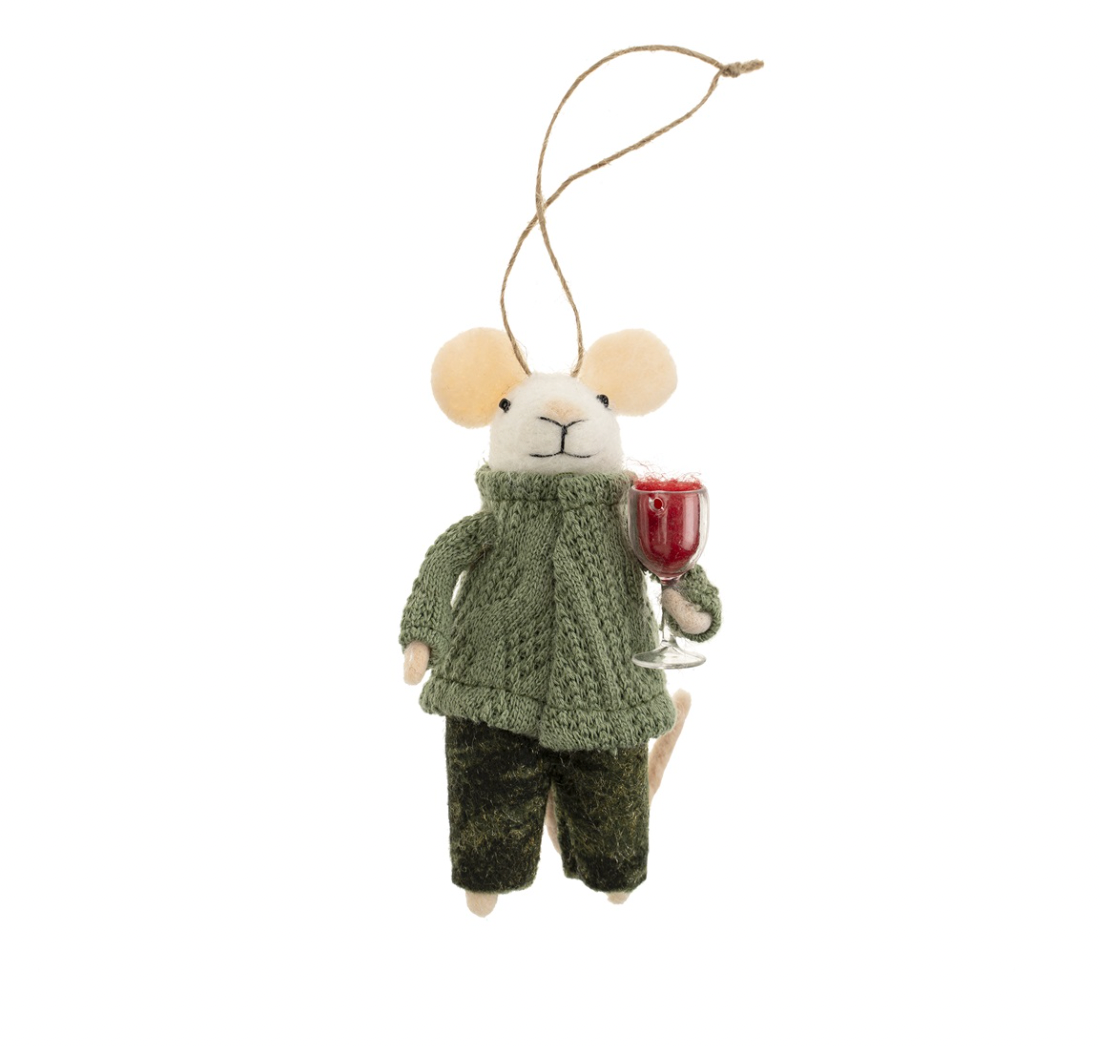 Part of our best selling mouse collection and made from soft wool/polyester felt and adorable outfits, these cuties are charming hung on the tree, on wine bottles or sitting on the shelf supported by their wire tails. Due to their popularity, we suggest displaying a collection of mice year round - find your favourite!
