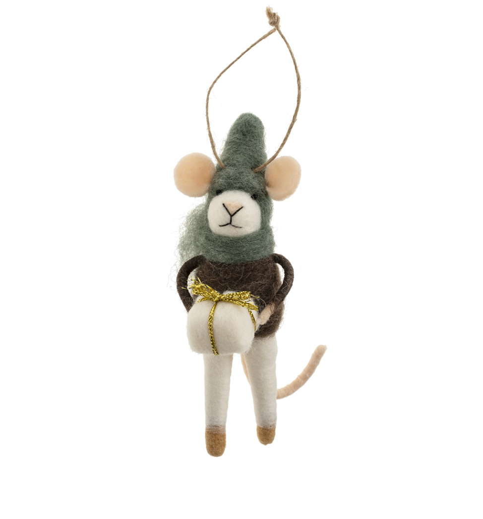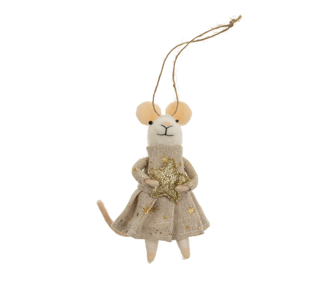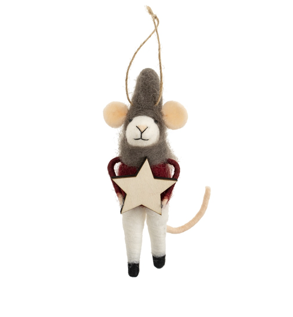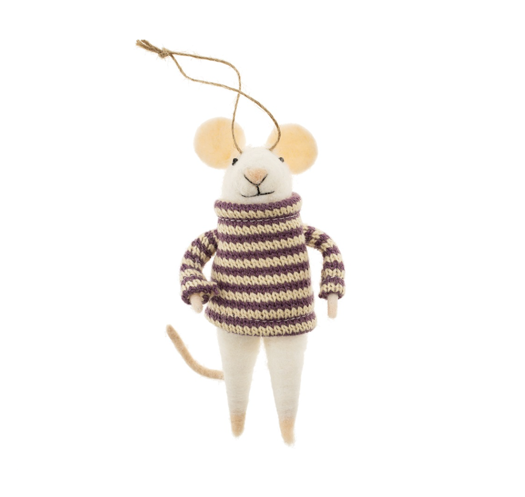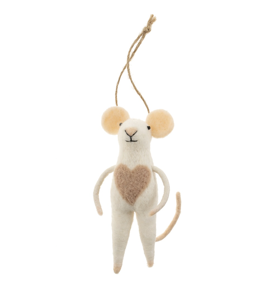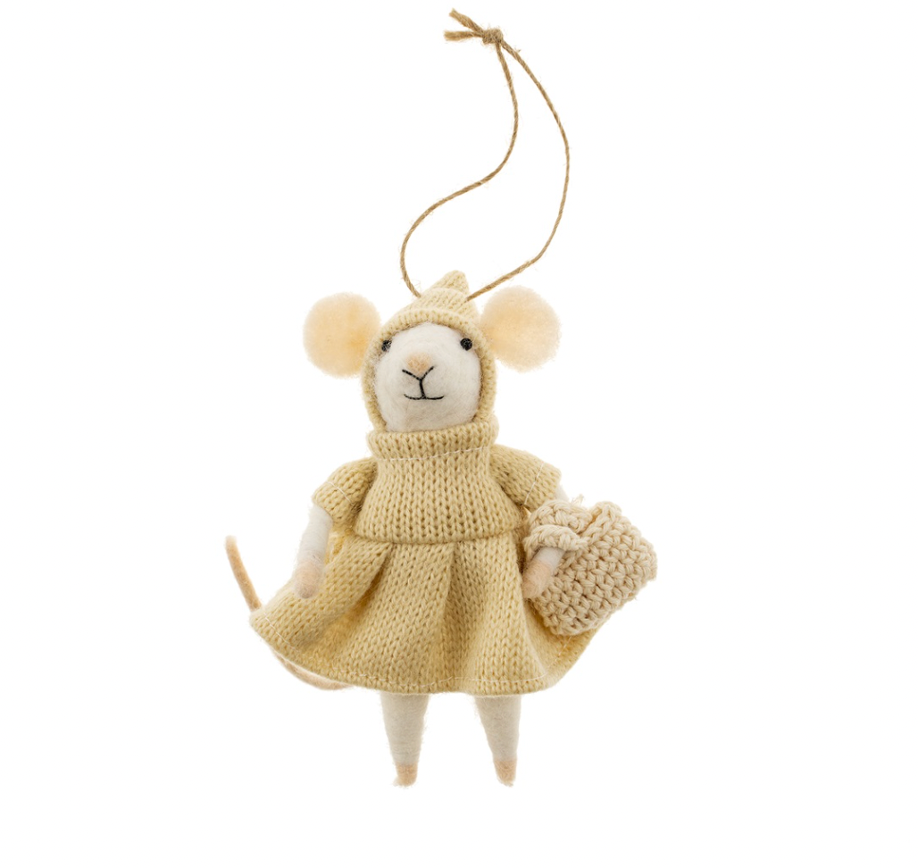 Part of our best selling mouse collection and made from soft wool/polyester felt and adorable outfits, these cuties are charming hung on the tree, on wine bottles or sitting on the shelf supported by their wire tails. Due to their popularity, we suggest displaying a collection of mice year round - find your favourite!