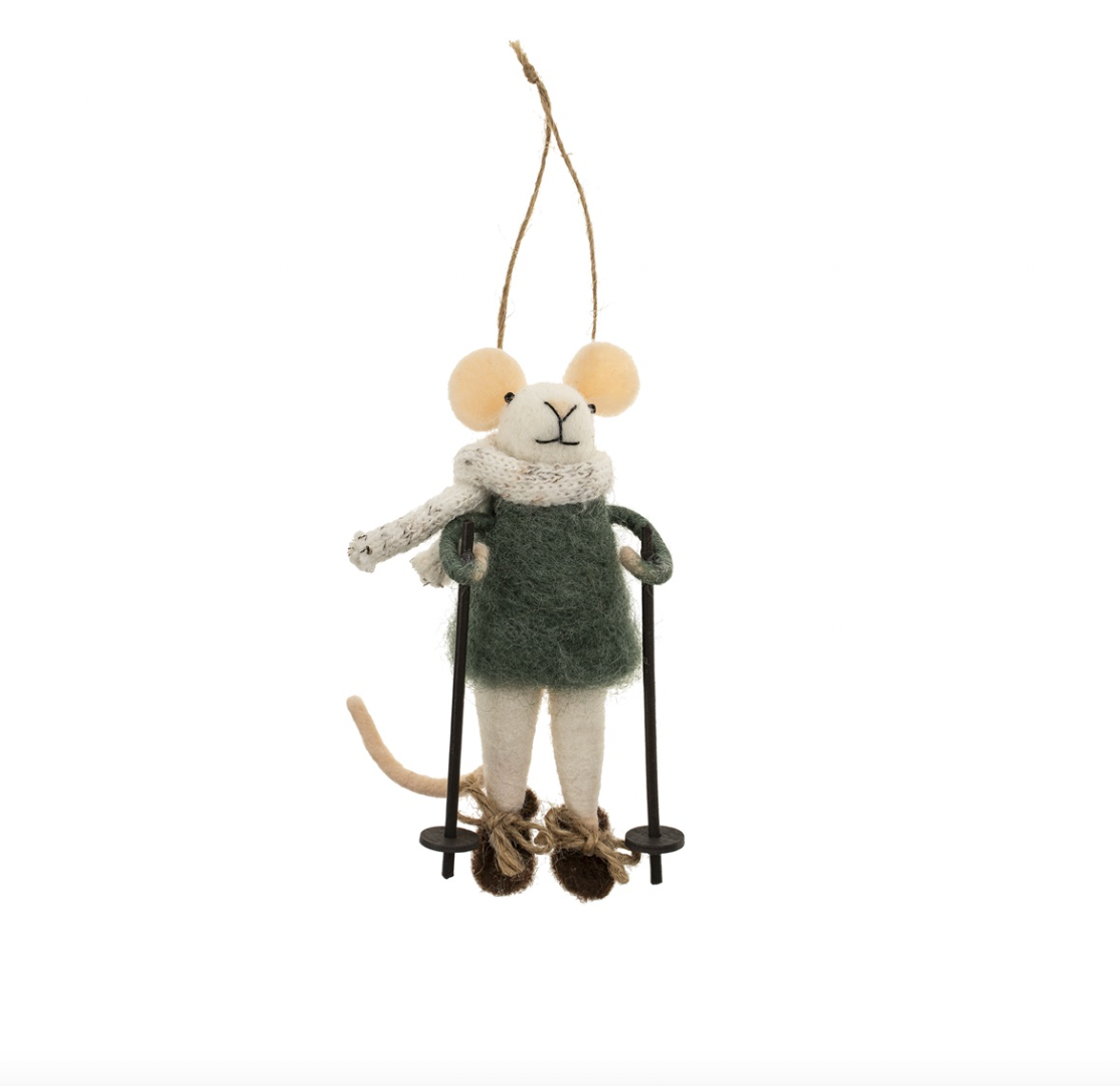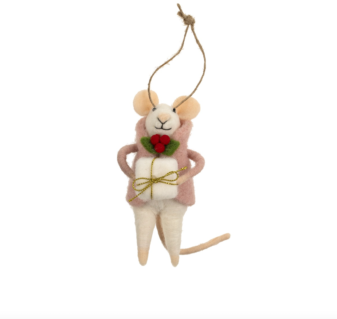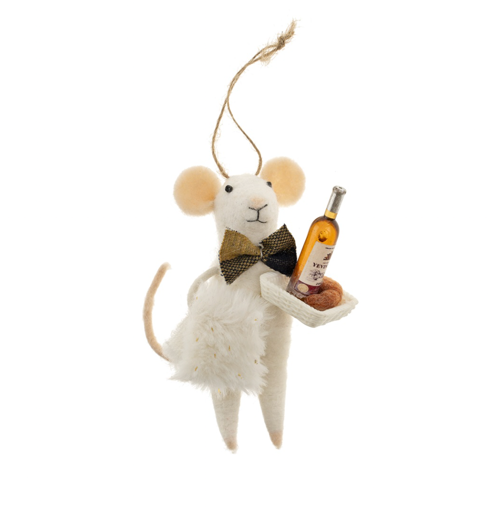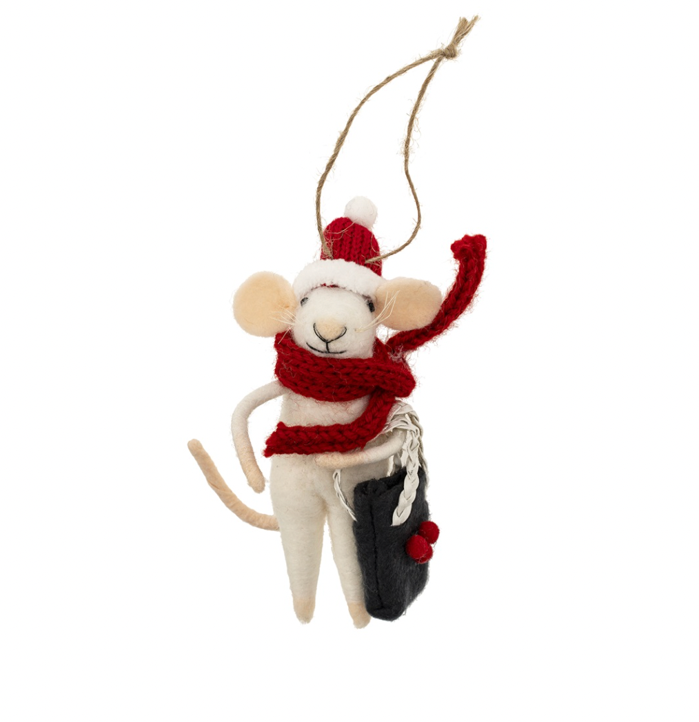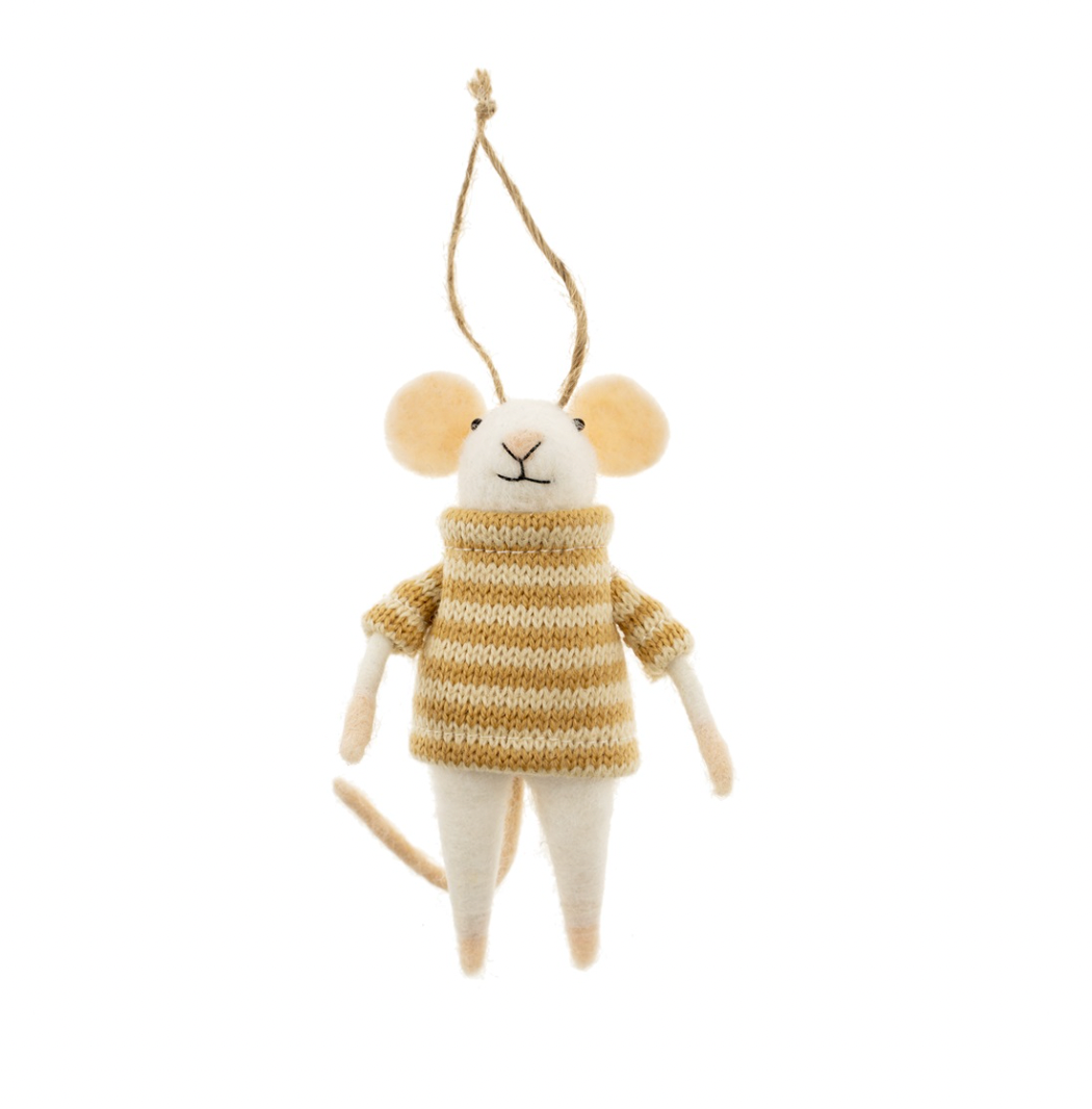 Part of our best selling mouse collection and made from soft wool/polyester felt and adorable outfits, these cuties are charming hung on the tree, on wine bottles or sitting on the shelf supported by their wire tails. Due to their popularity, we suggest displaying a collection of mice year round - find your favourite!