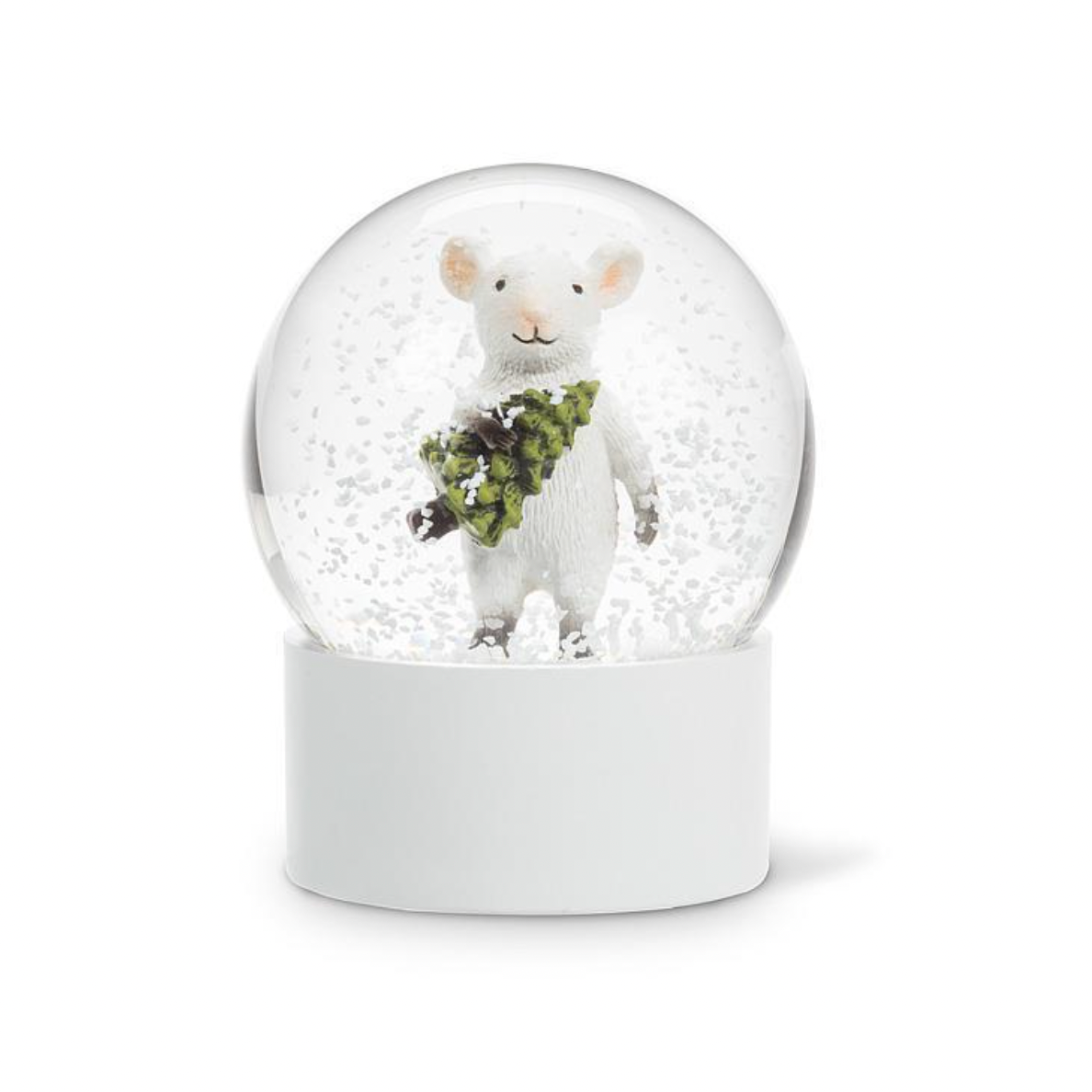 Get ready for some winter wonder with this Mouse with Tree Snow Globe. Crafted out of resin and glass, this circular snow globe features a sweet little white mouse holding a tiny Christmas tree for a captivating addition to any animal-lover's holiday decor. 3" tall.