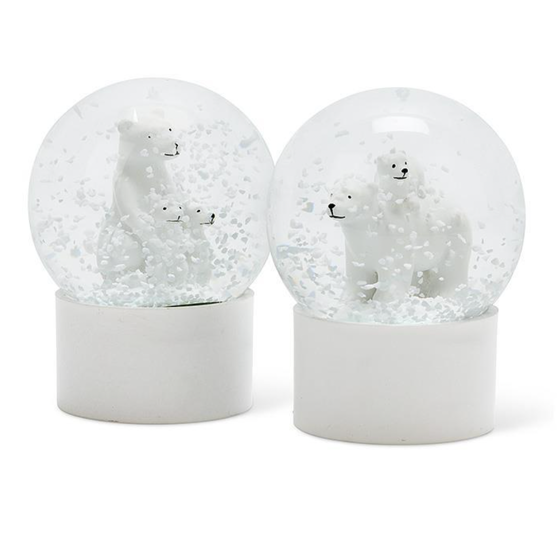 Celebrate the season with these delightful Small Polar Bear Snow Globes. Crafted out of resin and glass, these two clear snow globes with white bases both feature polar bears with their adorable Arctic cubs. Alone or paired together, they make a wonderful, wintry complement to all your holiday decor.