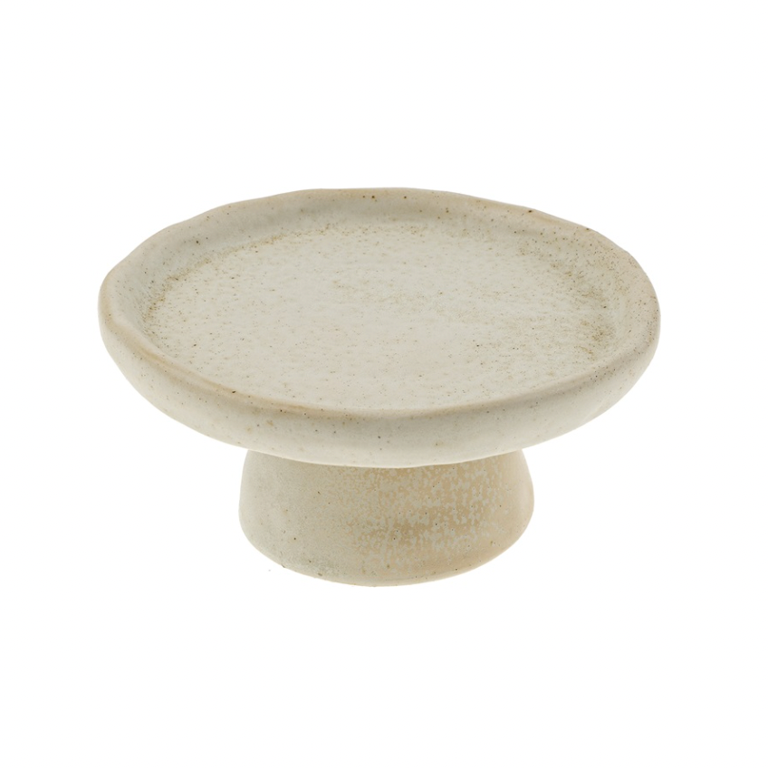 The Artisan Cake Stand is a beautifully handcrafted piece that brings warmth and elegance to your table. Made from stoneware, it features an organic shape and a soft cream finish, offering a timeless, artisanal touch. Whether used to serve chocolates, desserts, or as a charming display for small treats, this stand blends function with effortless style. Its handmade nature ensures each piece has unique variations, adding to its charm and authenticity.