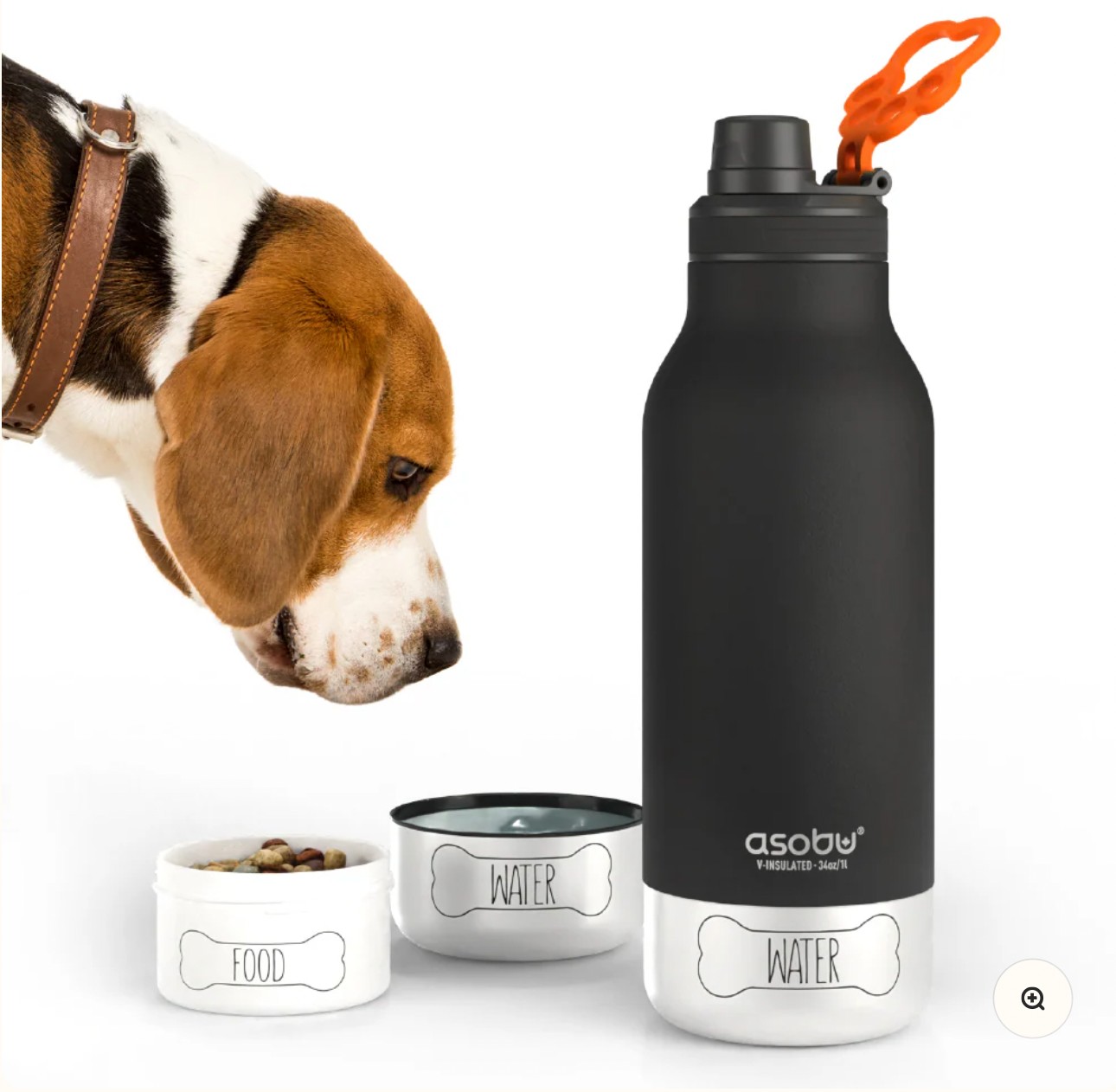 Our Barky Bottle makes it easy to share with your pup! A stainless steel, insulated bottle keeps water cold for hours, and two detachable bowls make it easy to share water — and a snack — with your buddy! The leak-proof cap ensures your water won't spill, no matter where your adventures take you, and the easy-to-carry pawprint handle makes it the perfect bottle for your next hike. The Buddy Bottle makes the perfect gift for the dog parent in your life! 34 oz bottle