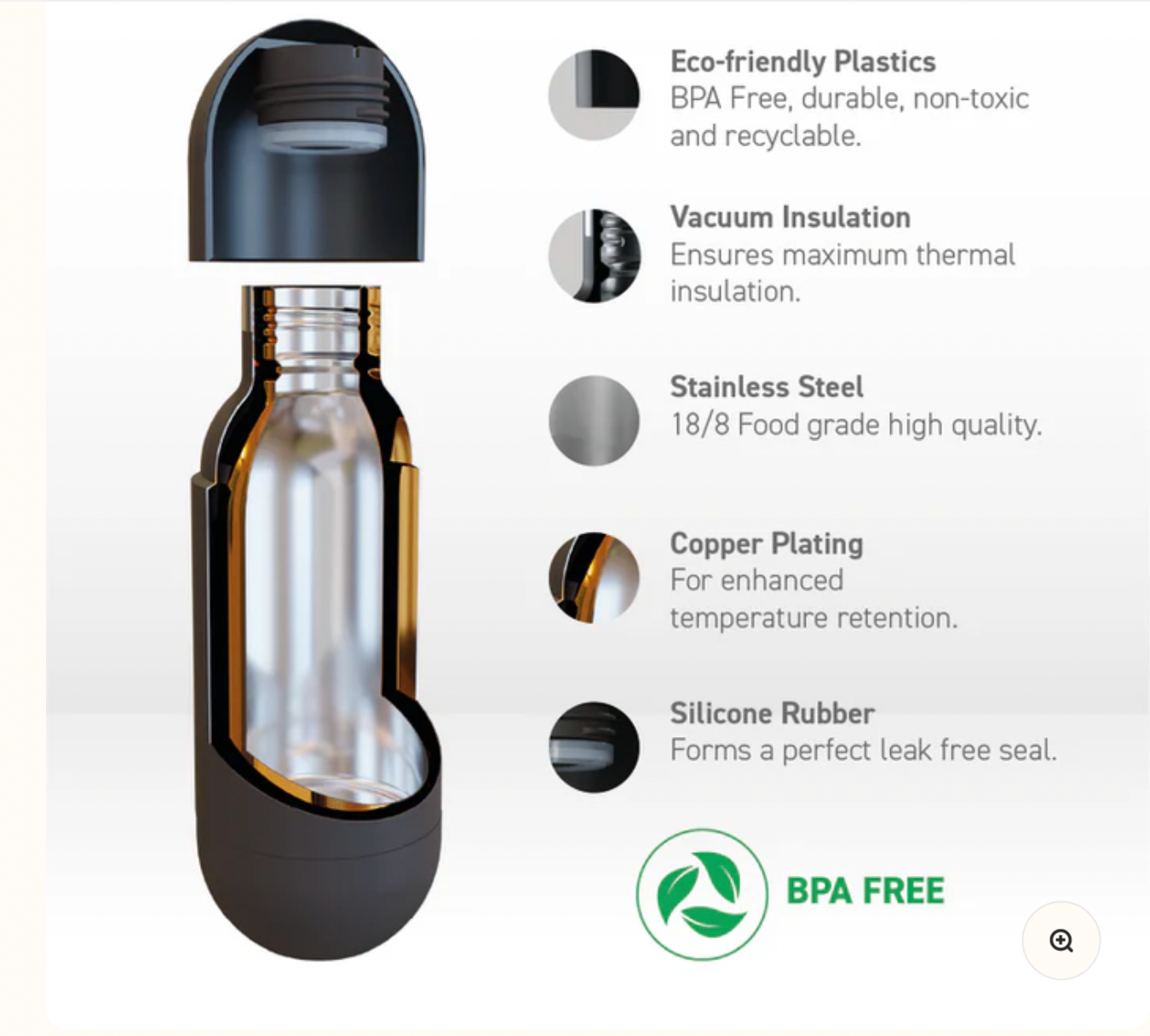 And now with our Puramic™ coating your water will be fresher than ever eliminating that metal aftertaste that stainless steel can bring.