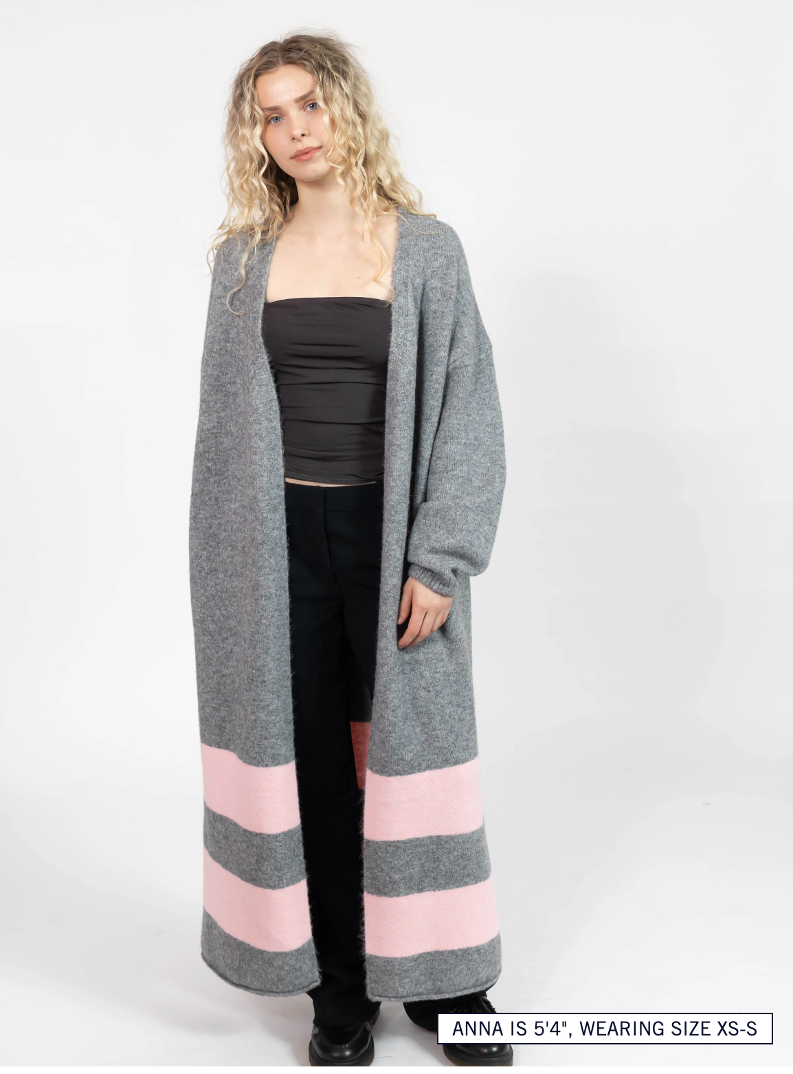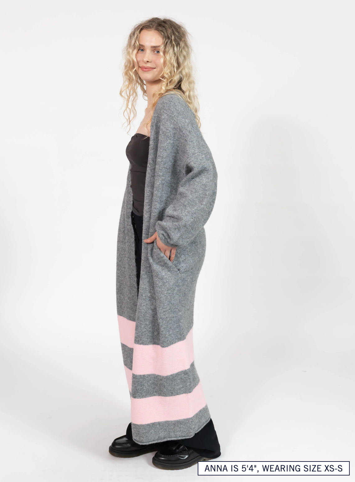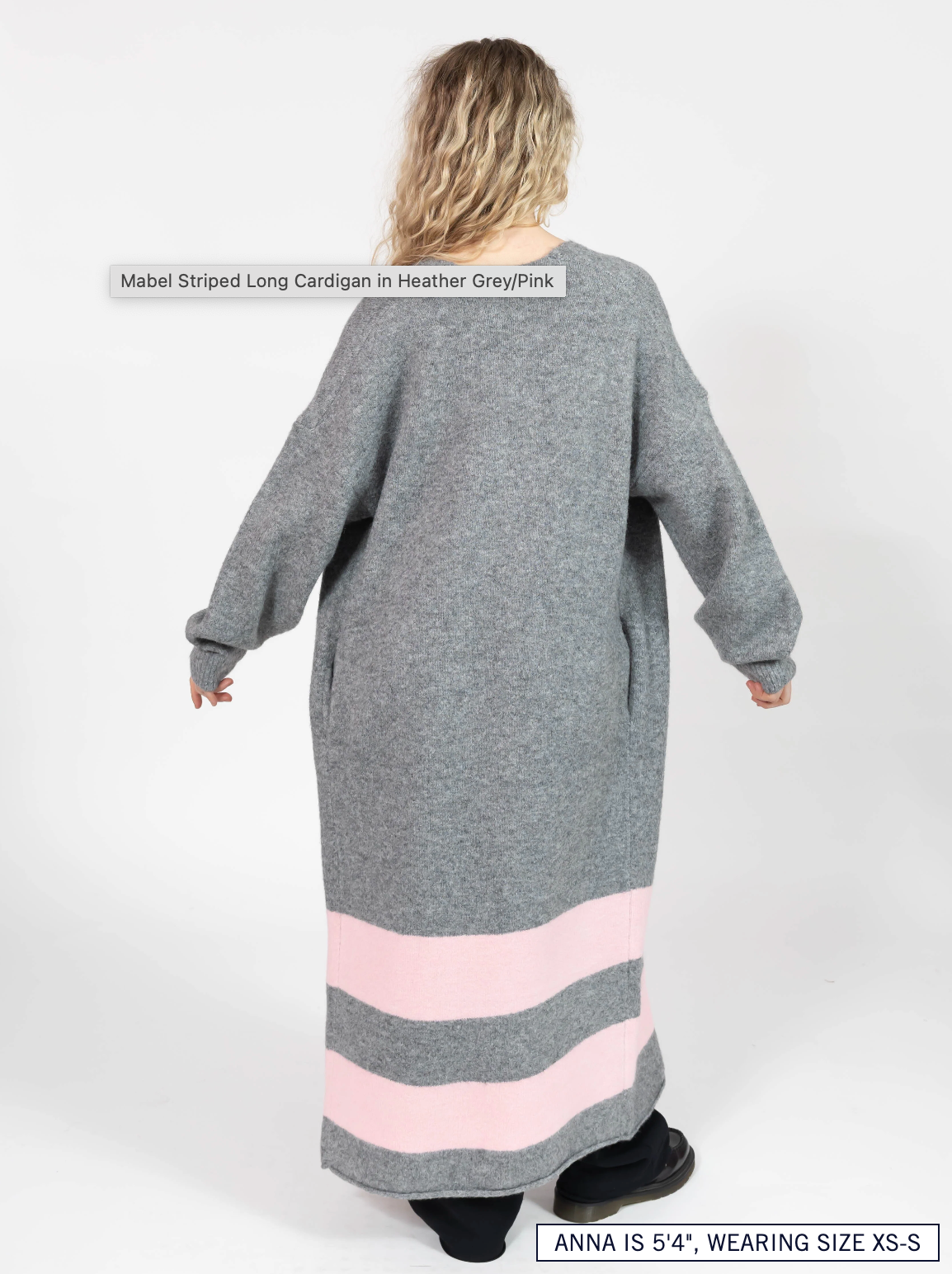 A long cardi that feels like a light coat! Perfect for the season, the Mabel Striped Long Cardigan is made in our signature soft feathery yarn. 0% itch and 100% cute, this adorable silhouette is the perfect midi length with a relaxed fit and open front. Pair this with any fit to transition your look for the cooler days ahead!
