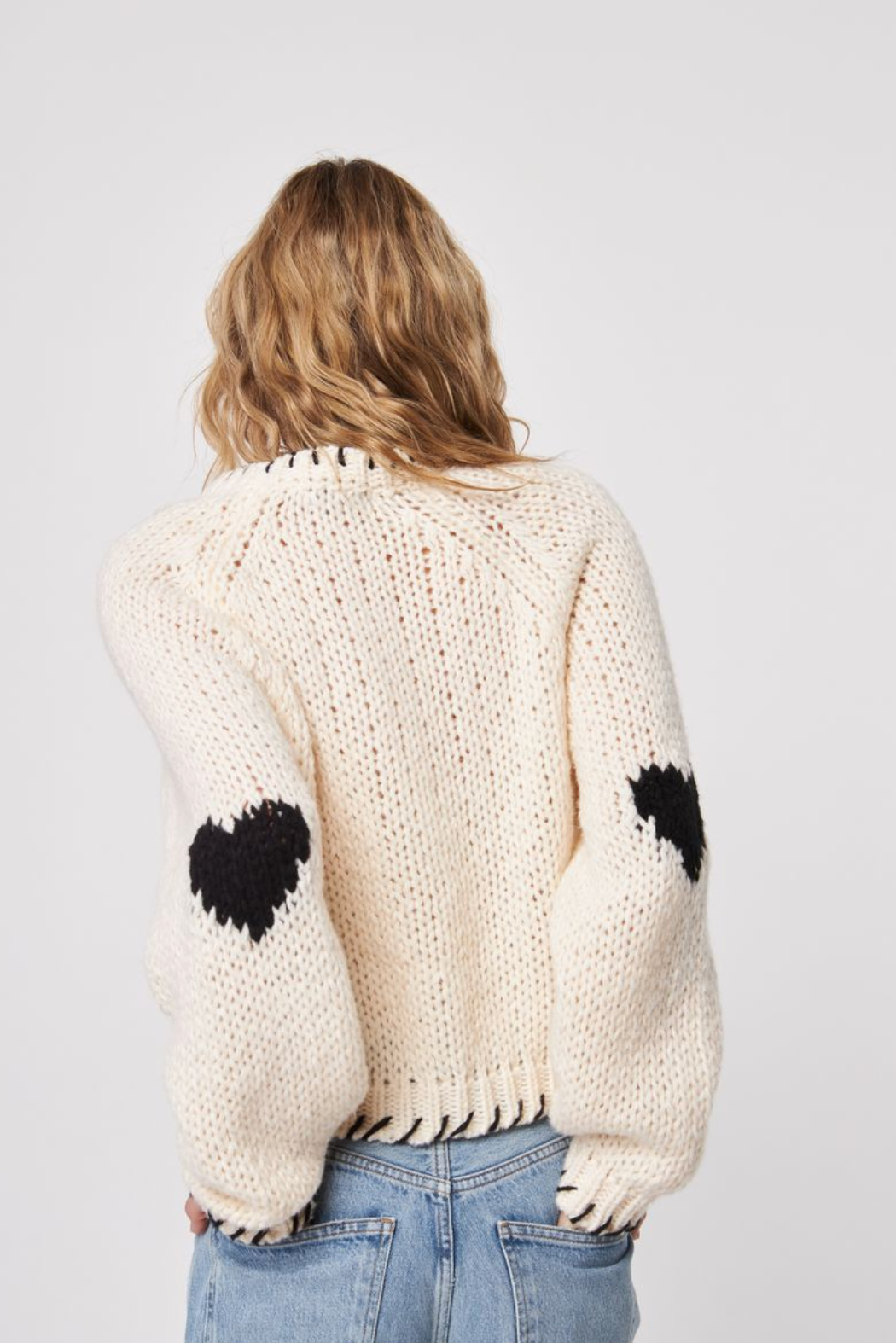 Cozy up in the irresistibly soft Declan Sweater with cute heart print and open stitching.