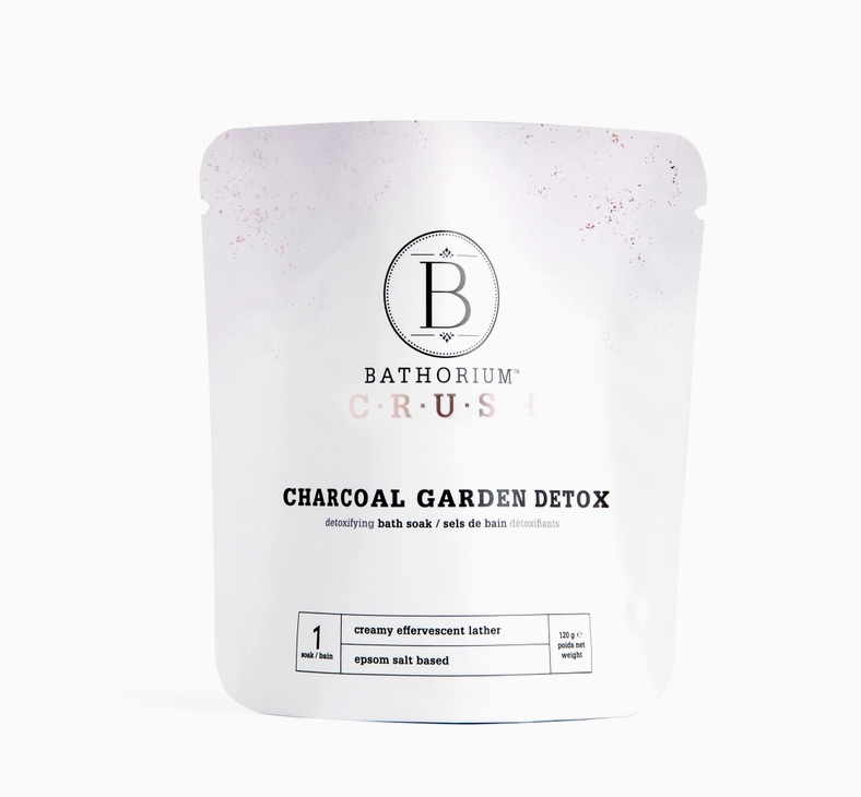 Charcoal Garden - This detoxifying bath soak is powered by organic bamboo charcoal to draw out toxins and impurities, while spicy basil and calming lavender essential oils reset the mind. A blend of epsom salt flakes and French sea salts eases tired muscles, and creamy coconut milk leaves skin soft—no lotion or body oil needed.