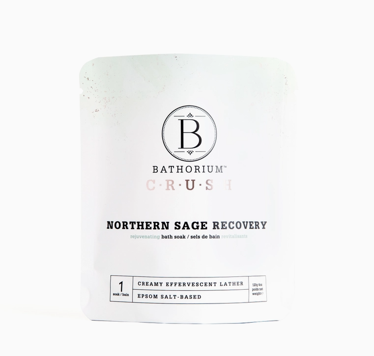 Northern Sage - Cool, clarify, and recover with this powerful bath soak designed for athletes, congestion relief, and total-body reset. Fresh menthol crystals create a tingly sensation while sage, pine, and coriander seed essential oils help detoxify. Abyssinian oil nourishes, while BC blue glacial clay, hand-harvested in Canada, draws out impurities and replenishes minerals.