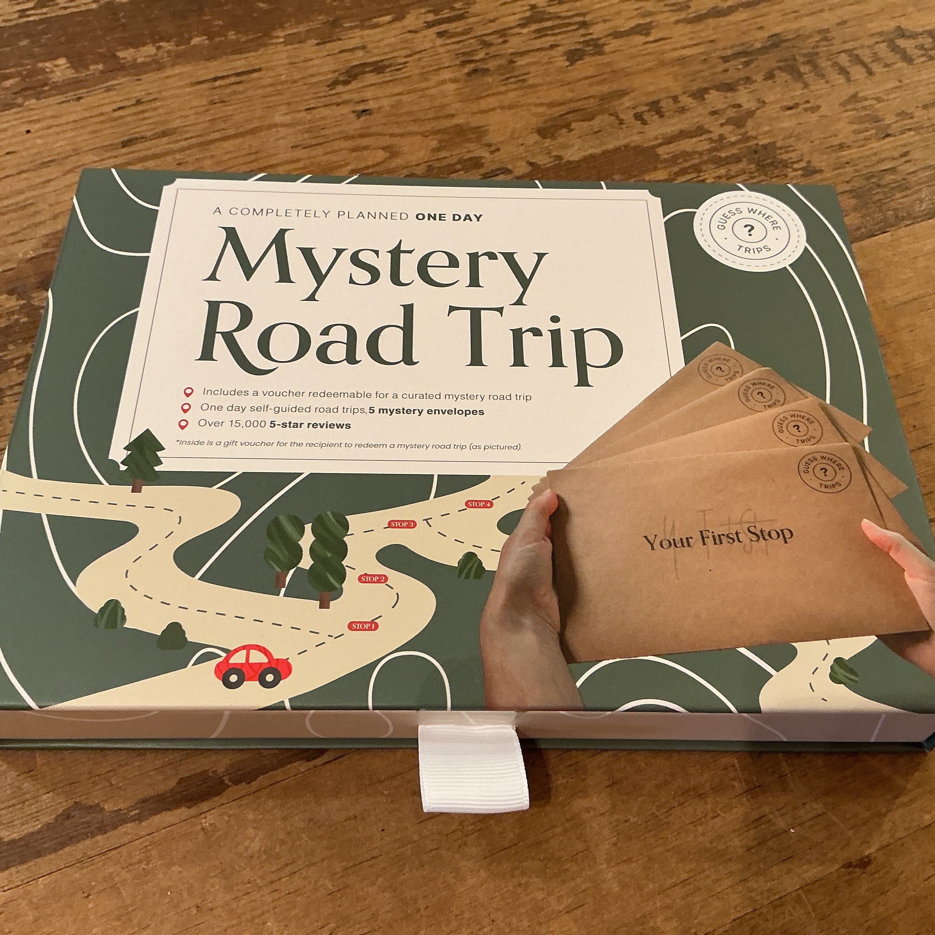 This Guess Where Road Trip Box contains a voucher tht allows you to select a day trip based on your location and interests. Choose between a beautifully crafted package by mail or a PDF version sent to your inbox.  The voucher covers all taxes and shipping costs.