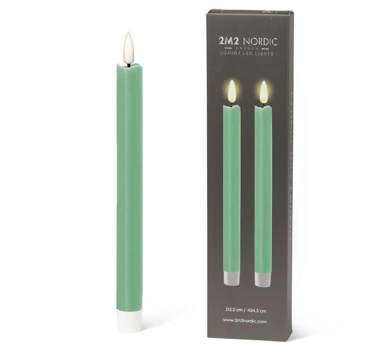 Enjoy the warm glow of candlelight without any fear of fire or mess with this elegant set of two Luxlite LED Taper Candles. Designed in Sweden, this all-wax candle features a realistic, pulsating 3D LED flame, with a run time of over 75 hours. Features an 8 hour timer. Powered by 2 x AAA batteries, this safe, ambience-adding candle makes an understated complement to any type of decor, either on its own or paired with other LED candles. Available in grey, red, white and sand.