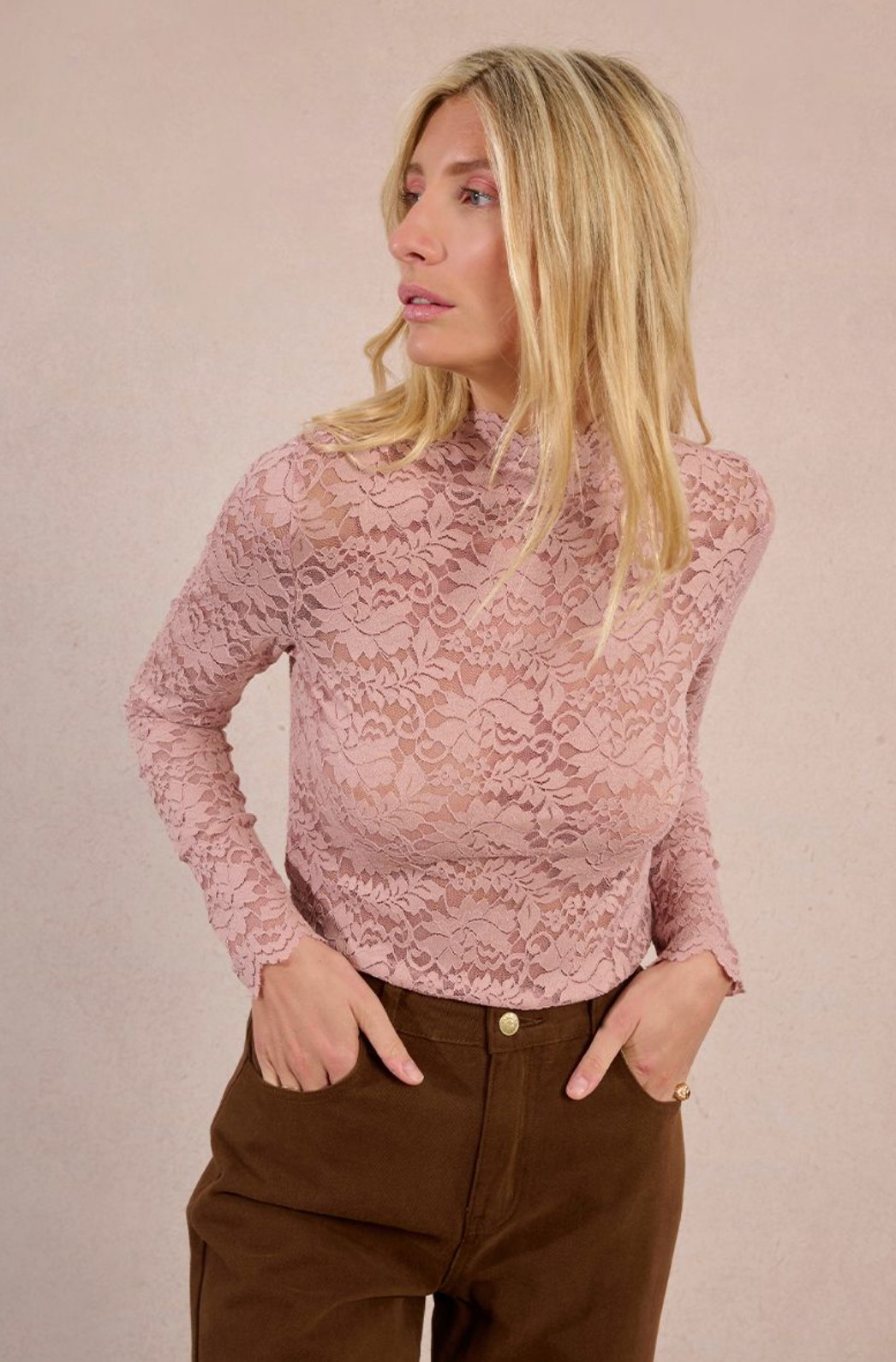 This charming rose lace shirt adds a flirty touch to any outfit. Perfect for layering up your style with a bit of fun!