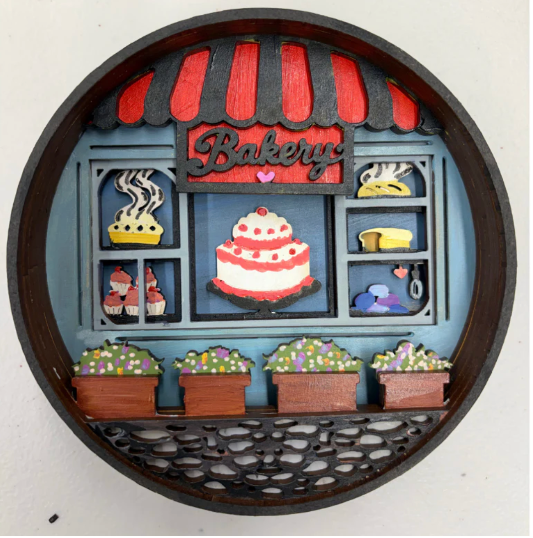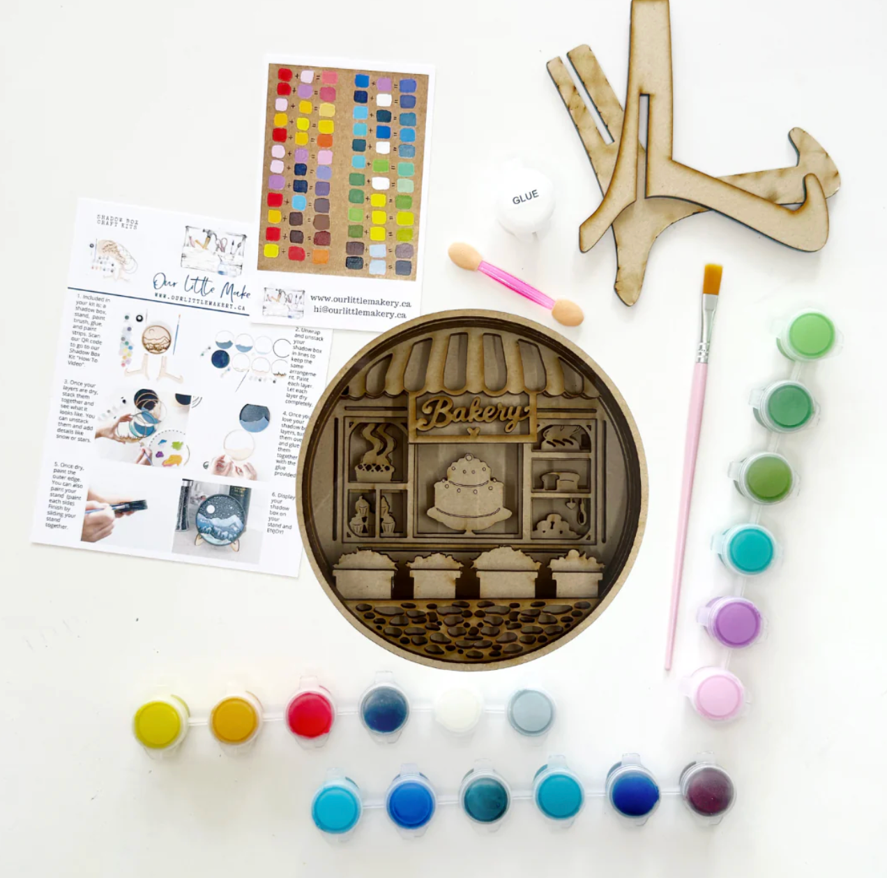 Nothing beats fresh baking first thing in the morning. We know that baking is just another form of crafting, so why not combine the 2? Our Little Bakery Shadow Box features a gorgeous bakery window showcasing loafs of bread, cupcakes, macaroons, and of course our favourite, the perfect cake right in the heart of it all!